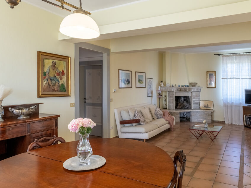 Villa Marchetti is a beautiful holiday villa located on a panoramic hill, surrounded by olive groves, vineyards, and fruit trees, with a spectacular view of the Adriatic Sea. Just 3.5 km from the beach of Cupra Marittima, the villa offers the ideal retreat for those seeking tranquility and nature, thanks also to its location away from traffic, with the nearest house just 500 meters away. Perfect for families or groups of friends, it comfortably accommodates up to 11 people in self-catering mode.